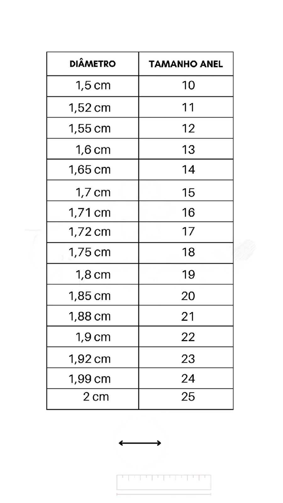 - Se você já tem algum anel e quer descobrir o tamanho para comprar um novo modelo, basta medir o diâmetro dele.