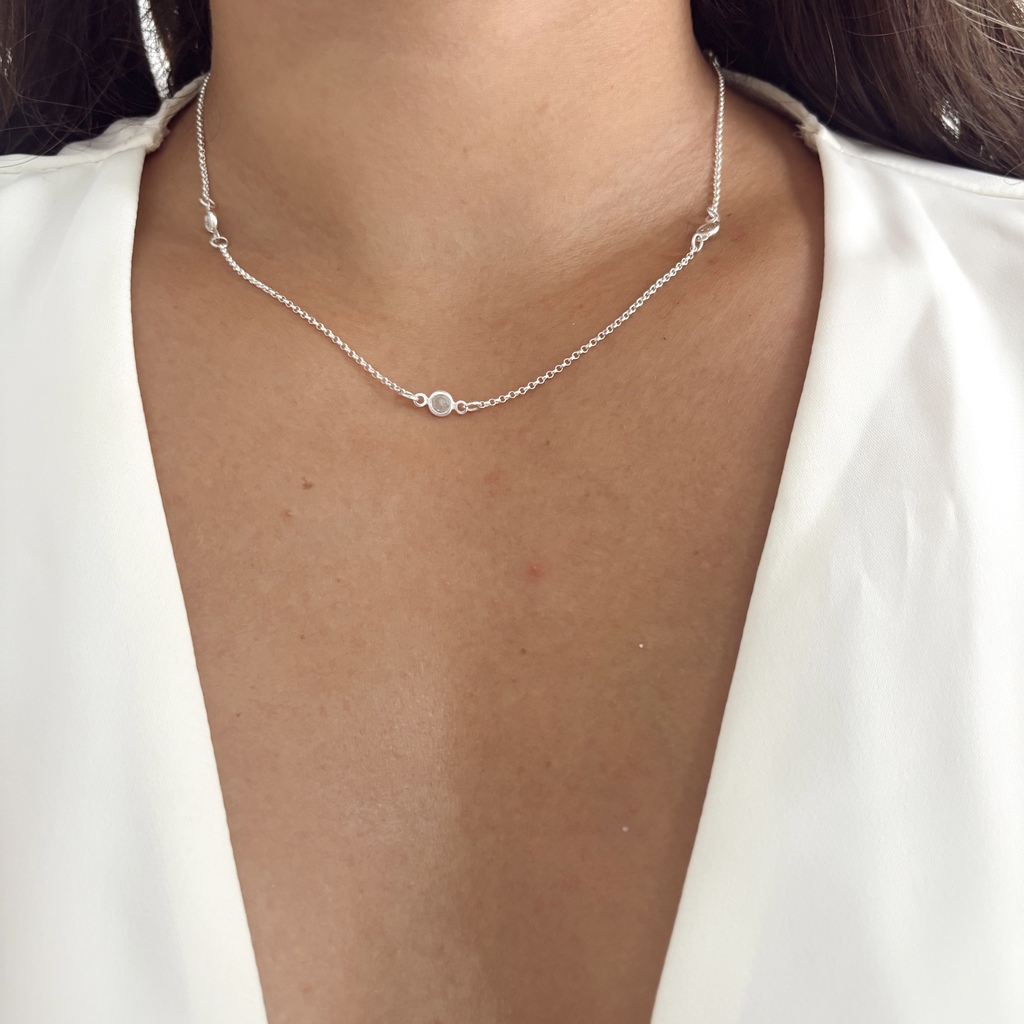 Delicado e atemporal, o Colar Ponto de Luz 40cm Prata 925 é a escolha perfeita para quem ama um brilho discreto, mas marcante. A zircônia de 4mm reflete a luz de forma encantadora, trazendo um toque de elegância para qualquer ocasião.